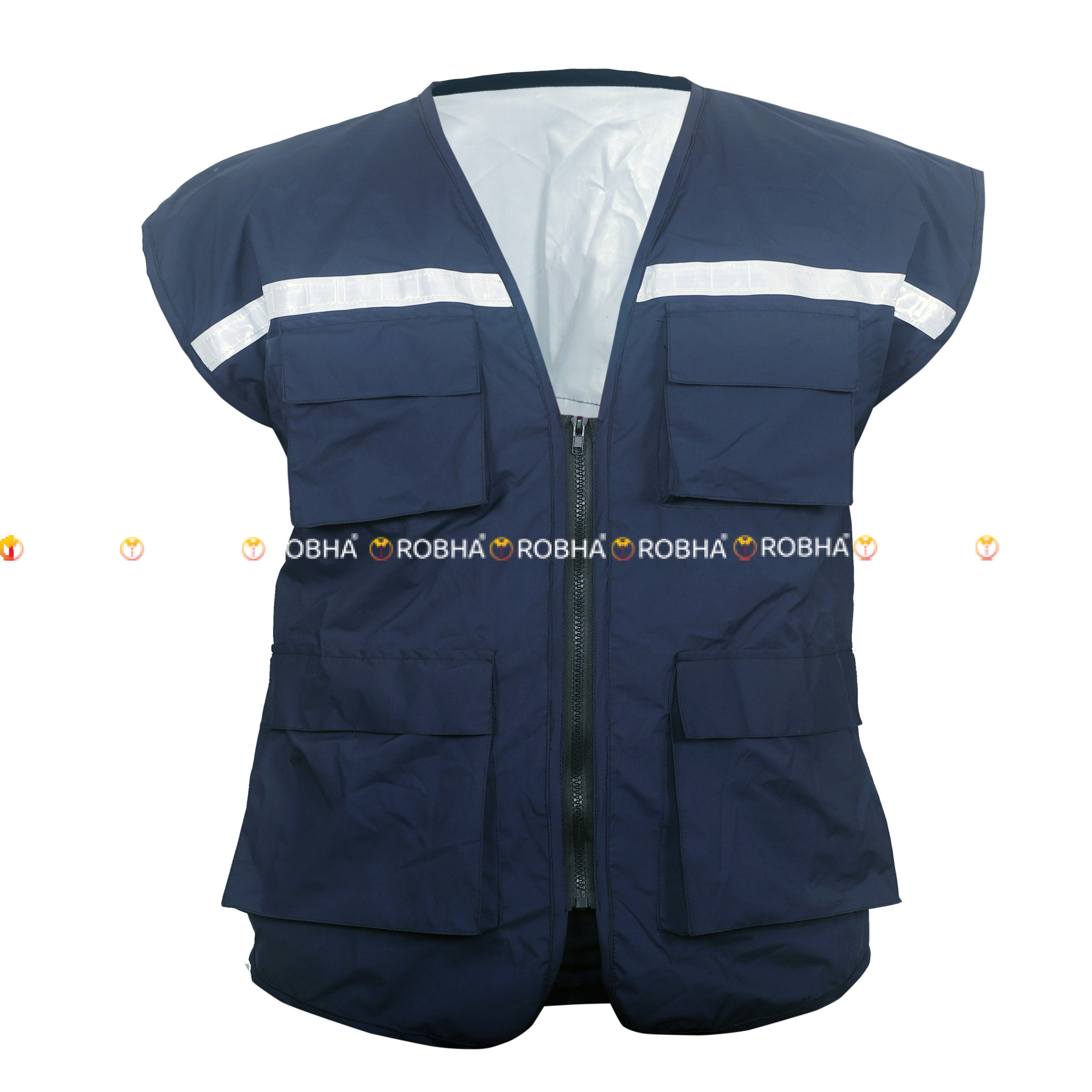Reflective Traffic Coat has bluecolor with onereflective lightening white bar which shows up bright to keep person safer. It is light weighted ,durable and comfortable to wear. This vest is highly visible even in the darkest hour in the light of vehicles . This traffic coat has two big pocket on the bottom and two on the top which provides a lot of space for instruments. It can also be used by traffic police , workers , media person , crew ,Emergency Response.